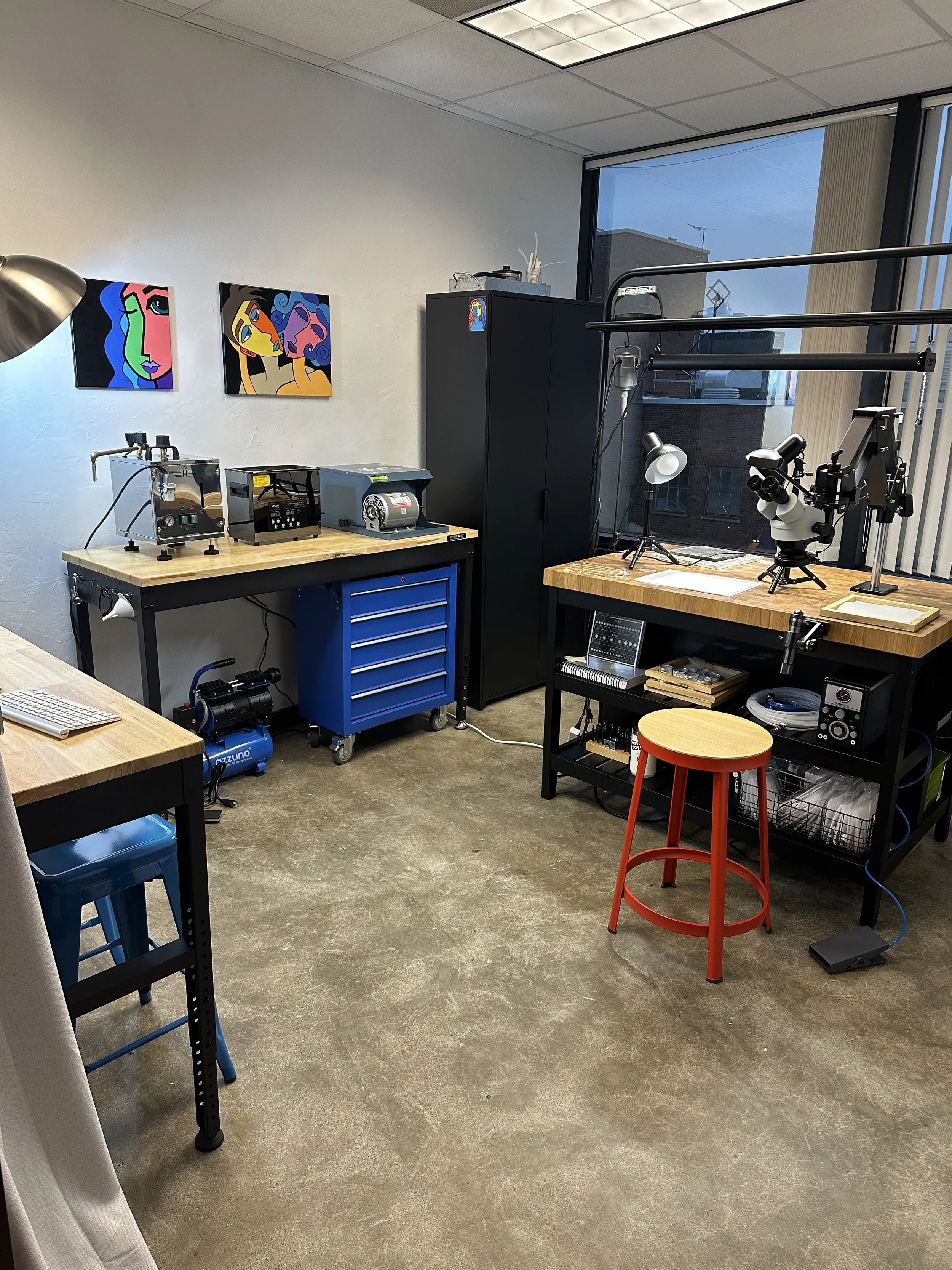 and genuine cabochon and baguette ear-studs in fourteen karat gold!